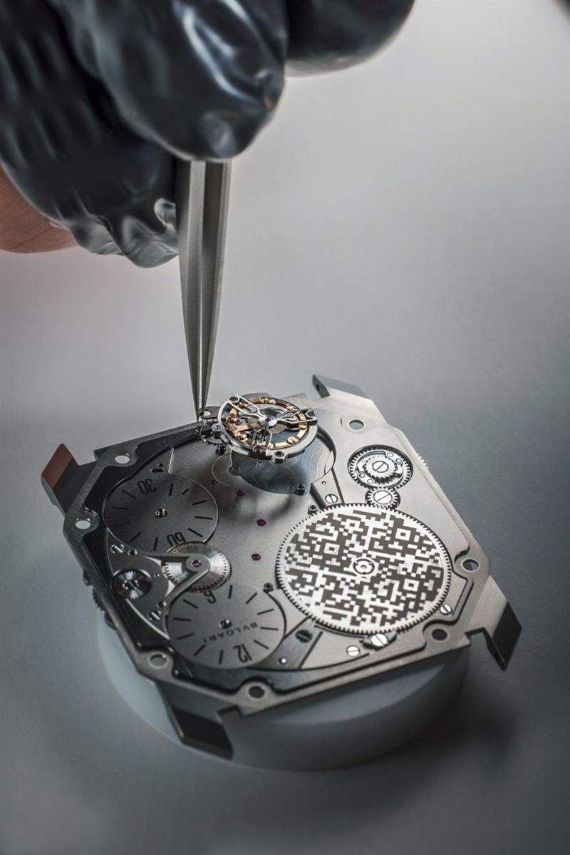 機(jī)芯部分,最重要是每一個(gè)微細(xì)零件的耐受度,與咬合的精確度。而表殼、夾板、鏡面、鏈帶甚至表冠與按把,這些看似與超薄結(jié)構(gòu)無(wú)直接相關(guān)的部件,實(shí)則也是牽一發(fā)而動(dòng)全身,全都必須考慮進(jìn)去。早于2014年第一只「超薄手上鏈陀飛輪」發(fā)表之前,寶格麗位于Le Sentier的高級(jí)制表工坊的大師們,就已經(jīng)秘密研究多年了。也就是說(shuō),一旦寶格麗掌握了「超薄密碼」,這一座圣杯也已被他們牢牢握住,想要搶走其實(shí)非常困難。
