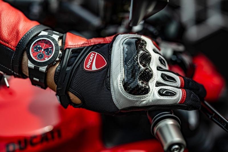 Aluminium計時碼表DUCATI特別版,紅色面盤與黑色三眼盤非常醒目。
