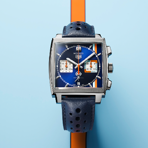 計時碼表的經(jīng)典Monaco是泰格豪雅很常出現(xiàn)變化款的支線,除了復(fù)刻之外,聯(lián)名也是他們很常改款的主題。繼2007年和海灣石油(Gulf)合作過后,今年再度推出進階的特別版,深藍、青藍和橘色這三個海灣石油的代表色,首度被運用在三點鐘位置的計時盤上,而12點鐘位置的鍍銠數(shù)字60,則是在致敬保時捷海灣石油賽車上的號碼。另外除了表帶內(nèi)里,連導(dǎo)柱輪也以橘色處理,滿細膩地把品牌代表色安插在表款細節(jié)里。