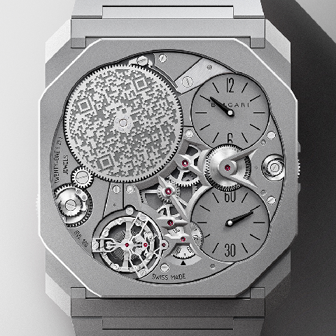 在Octo Finissimo Ultra面盤上可以看到發(fā)條盒的地方有QR Code的鐫刻,透過QR Code的掃描可以看到表款相關(guān)的訪談、制作工序、和機芯虛擬3D導(dǎo)覽等等,讓表主可以更加了解自己買的手表是什么來歷。另外寶格麗也與時俱進(jìn)搭上了NFT的順風(fēng)車,買到這十只限量版的Octo Finissimo Ultra藏家,都可以獲得專屬的NFT藝術(shù)作品,除了再度用超薄打破紀(jì)錄之外,也為品牌在NFT領(lǐng)域先進(jìn)行了一場暖身。