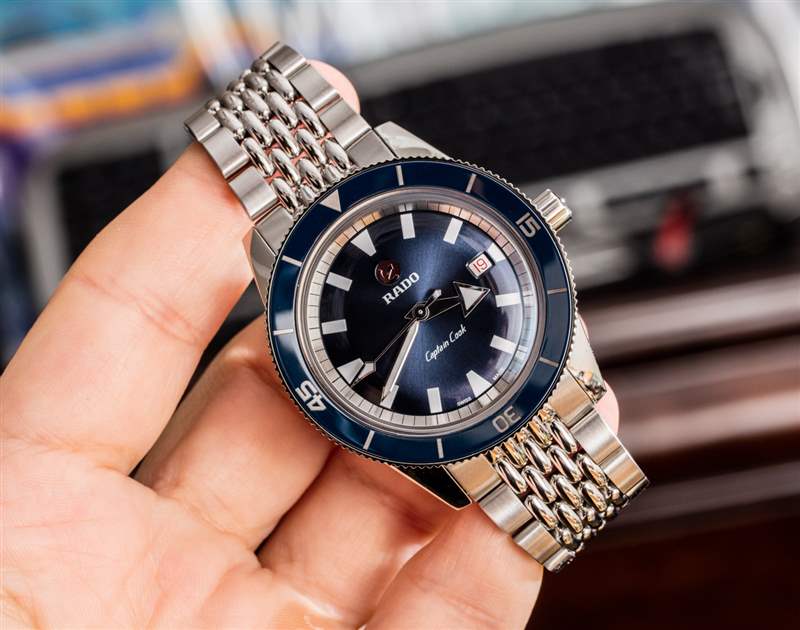 對于一些更現(xiàn)代的 Rado 手表,我不得不接受的一件事是,它們不再總是采用像陶瓷和其他異國情調(diào)的材料那樣的現(xiàn)代材料作為表殼的一部分。庫克船長自動腕表確實(shí)有一個(gè)藍(lán)色陶瓷表圈插件,但表殼本身是不銹鋼的。這并沒有錯(cuò),但消費(fèi)者(至少在北美)習(xí)慣于 Rado 的一切都是關(guān)于超耐刮擦金屬外觀的陶瓷材料,在考慮這樣的時(shí)計(jì)時(shí),他們將不得不重新審視 Rado 的價(jià)值觀。