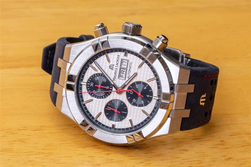 Maurice Lacroix Aikon Automatic Chronograph 44mm 表帶起價(jià)為 2,690 瑞士法郎。手鐲上的價(jià)格為 2,850 瑞士法郎。