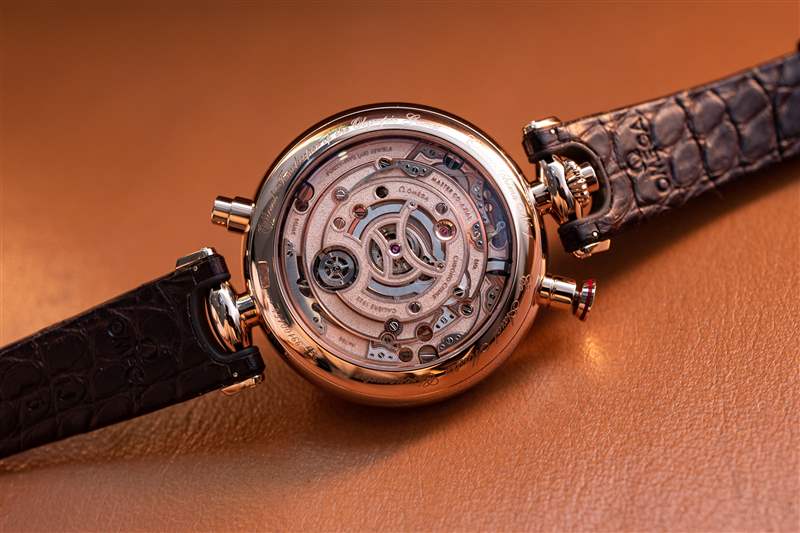 讓我們從機芯開始,因為兩個版本的 Chrono Chime 都是一樣的。它被稱為 Calibre 1932,是與寶珀合作六年多具體開發(fā)的結果。它代表 17 項專利和 575 個單獨的組件。它是一款 32.5 毫米手動上鏈同軸機芯,頻率為 5 赫茲。沒錯,5赫茲同軸,因此計時碼表能夠記錄1/10秒的分辨率,就像歐米茄在1932年首次作為奧運會官方計時使用的懷表一樣(其中在洛杉磯——感覺到一個主題?)。