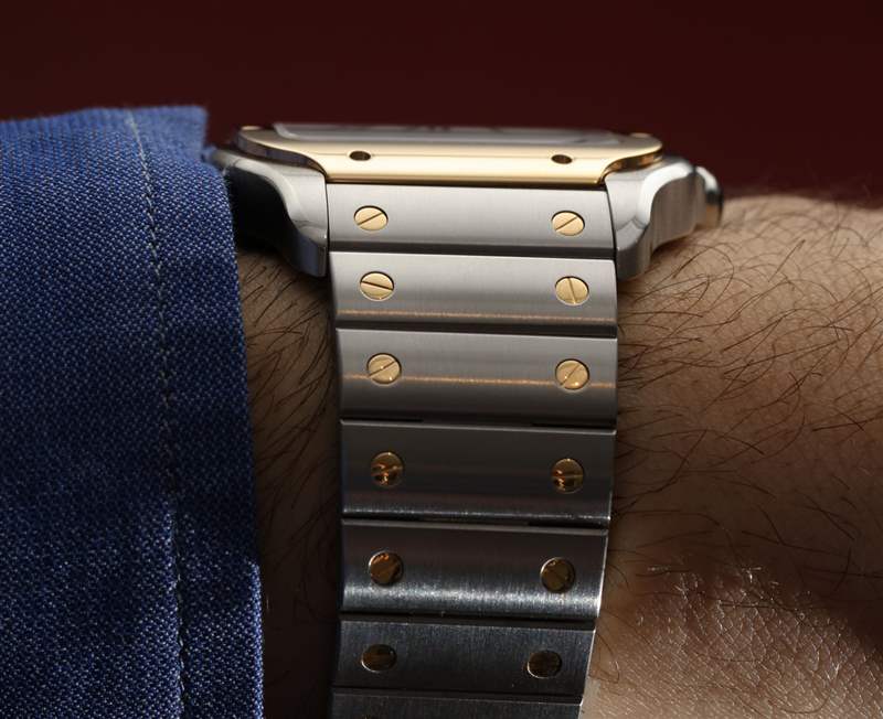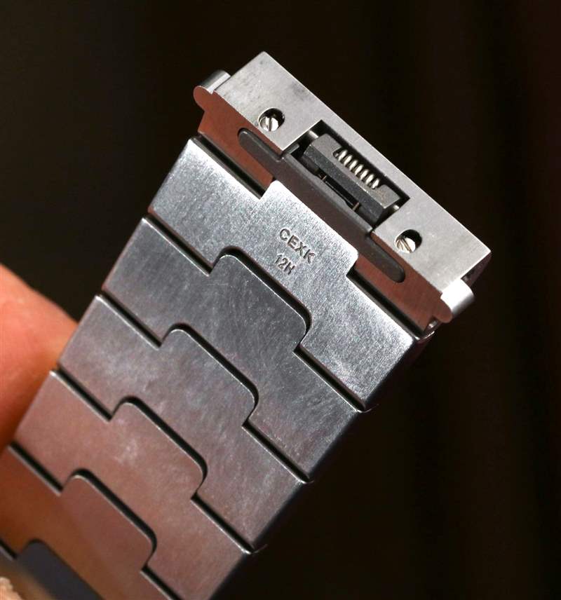 那些新系統(tǒng)是什么?卡地亞稱它們?yōu)?QuickSwitch 和 SmartLink。不,這些功能并不是獨(dú)一無(wú)二的,但很高興看到它們被部署在豪華手表中。雖然卡地亞沒(méi)有說(shuō)出來(lái),但我認(rèn)為可以肯定地說(shuō),新款 Santos 手鐲深受 Apple Watch 類似鋼制金屬手鐲的啟發(fā)。QuickSwitch 是一種手鏈釋放系統(tǒng),可讓您輕松按下手鏈下方的按鈕將其從表耳中釋放。同樣,其他手表也具有此功能,但它對(duì) Santos 來(lái)說(shuō)做得非常好,而且與表殼的貼合非常安全。QuickSwitch 是有道理的,因?yàn)榭ǖ貋喸O(shè)想 Santos 的車主會(huì)定期更換表帶顏色以及從表帶到手鐲。更重要的是,當(dāng)您在手鐲上購(gòu)買 Santos 時(shí),卡地亞會(huì)附贈(zèng)一條皮革表帶。