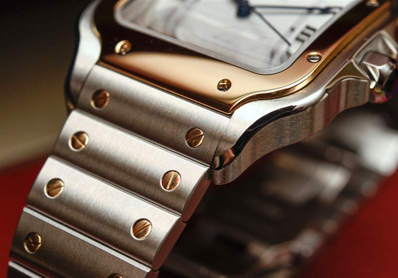 防水深度達(dá) 100m,卡地亞現(xiàn)在還為 Santos 提供抗磁性能。盡管這與運(yùn)動(dòng)有關(guān),而不是與表殼有關(guān)。桑托斯腕表的愛(ài)好者會(huì)立即看到,盡管 2018 年桑托斯的整體呈現(xiàn)與之前的版本相似,但還是有很多變化。也許最明顯的視覺(jué)效果(除了表殼比例)是表圈。它不再是完全方形的,而是現(xiàn)在在頂部和底部都有“唇”,旨在視覺(jué)上將表圈與手鐲設(shè)計(jì)連接起來(lái)。更多關(guān)于手鐲的信息。新的表圈肯定會(huì)受到一些人的歡迎,但我當(dāng)然可以理解有些人更喜歡外向的方形表圈設(shè)計(jì)。