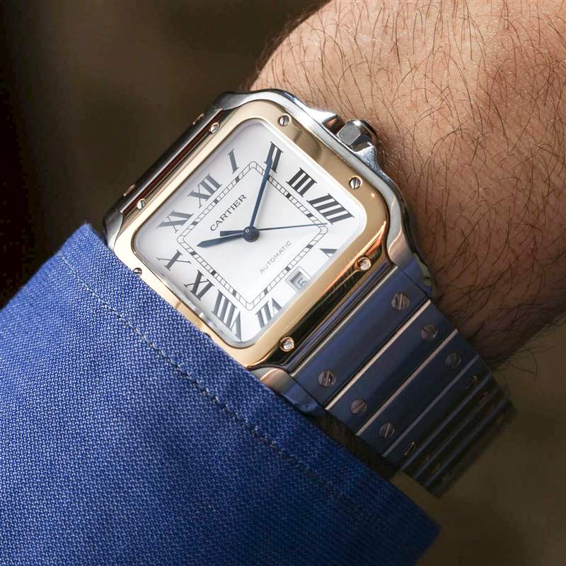 卡地亞很高興能與我們分享新 Santos 系列中的各種型號(hào)。Santos 有幾種款式,以及兩種表殼尺寸。有卡地亞主要為女性設(shè)計(jì)的 35.1 毫米寬、41.9 毫米表耳到表耳和 8.83 毫米厚的“中號(hào)”桑托斯,然后是 39.8 毫米寬、47.5 毫米表耳到表耳和 9.08 毫米厚的“大”桑托斯,這是大多數(shù)男人會(huì)喜歡的。除了表殼尺寸不同之外,中號(hào)和大號(hào) Santos 表殼之間的另一個(gè)區(qū)別是表盤上有一個(gè)日期窗口。它在較小的型號(hào)中沒(méi)有,存在于較大型號(hào)表盤的6點(diǎn)鐘位置。廣告訊息廣告信息結(jié)束