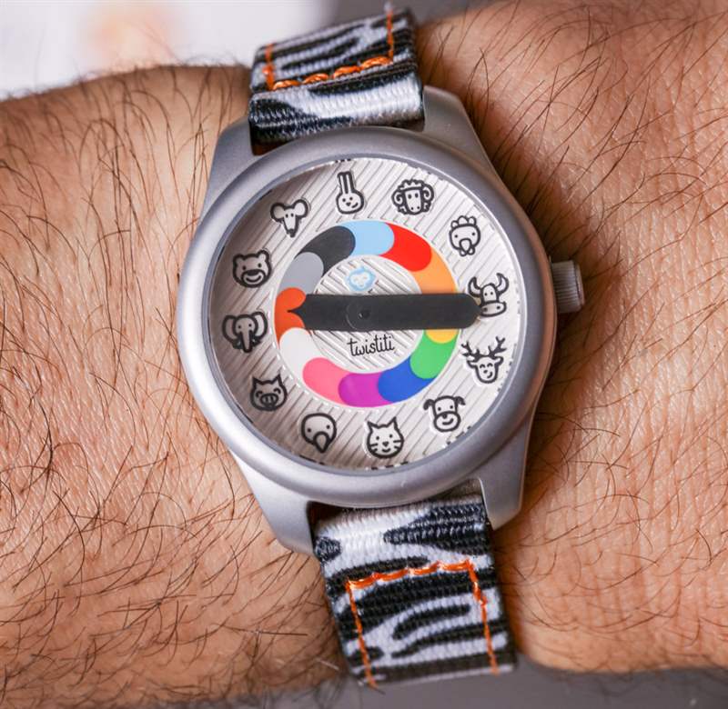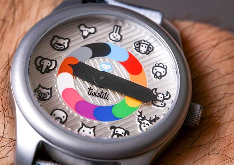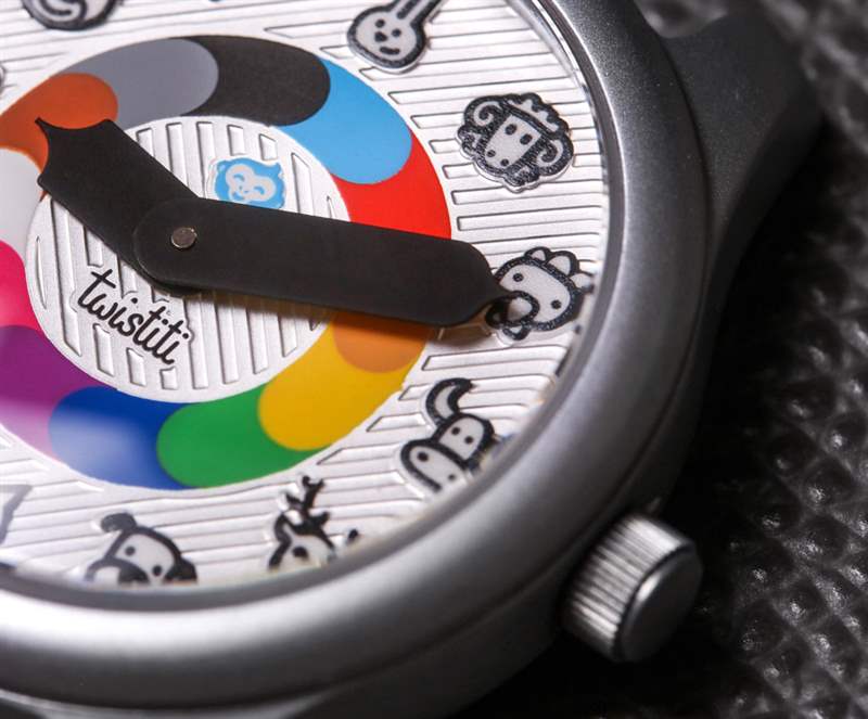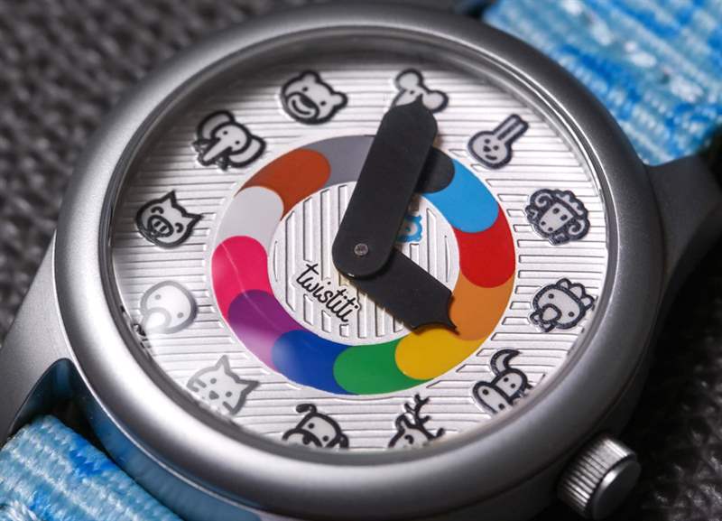 Twistiti 的 Animal 腕表系列更加俏皮,以顏色和動物面孔作為時(shí)標(biāo)的組合。表盤看起來不錯(cuò),但我認(rèn)為錯(cuò)過了一些機(jī)會。動物的面孔或多或少是隨機(jī)的。這意味著似乎與動物臉?biāo)淼男r(shí)標(biāo)記和那個(gè)小時(shí)沒有關(guān)聯(lián)。例如,9 點(diǎn)鐘的時(shí)標(biāo)有一個(gè)大象的臉。為什么不選擇名字以字母“n”開頭的動物或設(shè)計(jì)成看起來像數(shù)字 9 的動物臉呢?