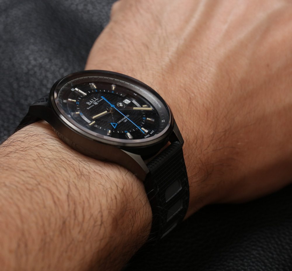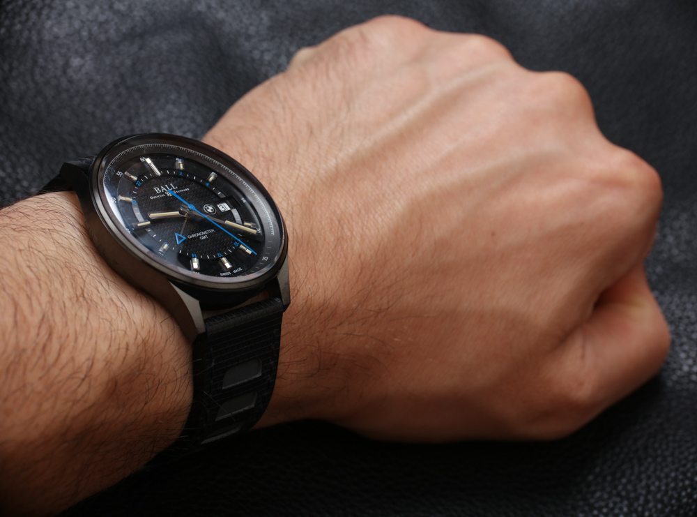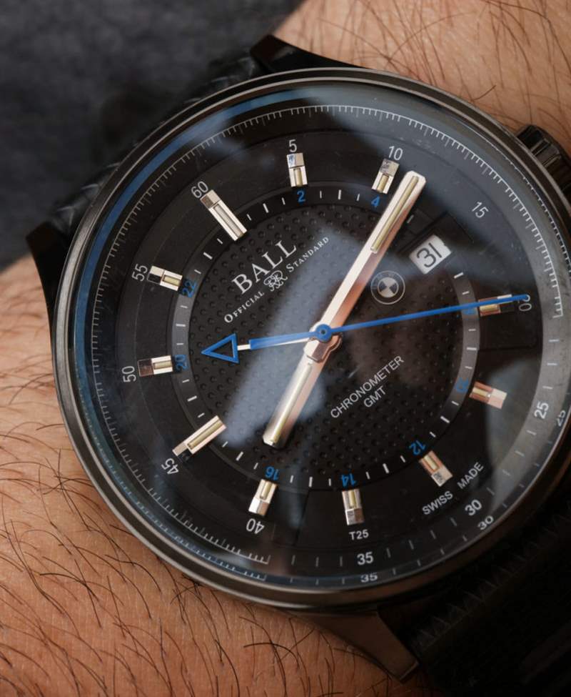 Ball 向我發(fā)送了這款 Ball For BMW GMT 限量版手表的早期原型,帶有黑色表盤、表帶和 DLC 黑色表殼。我想強調(diào)的是,這確實是一款原型表,這意味著它在外觀上與最終版本的外觀相去甚遠。我這么說是為了解釋為什么這件作品的藍寶石水晶上沒有 AR 涂層,以及為什么您可能會注意到早期生產(chǎn)的表盤很臟。對我來說,我可以玩所有這些還沒有準備好迎接黃金時段的鐘表!我是在諷刺,我對消費者最終會實際購買的最終手表感到最興奮——即使在發(fā)布前看到東西是一項很酷的工作。
