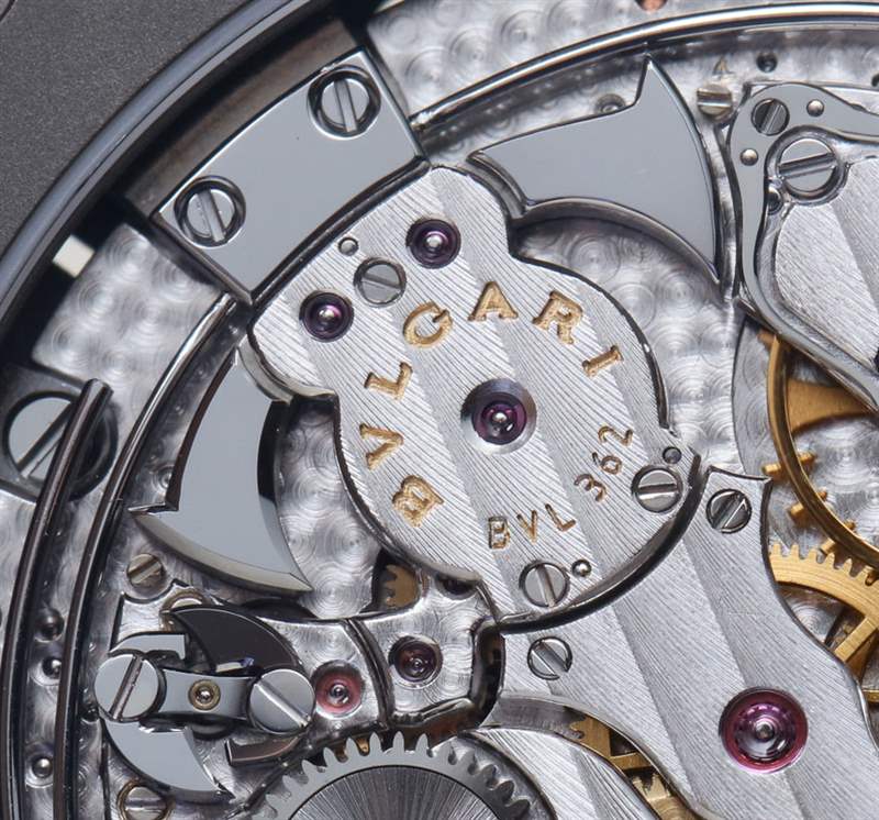 寶格麗 (Bulgari) 機芯 BVL 362 采用精美的手工打磨,頻率為 3 赫茲(21,600 次/小時),動力儲存為 42 小時。它提供帶小秒針和三問報時裝置的時間,機芯后部可見音錘和音簧。在我看來,唯一缺少的就是動力儲存指示器——原裝寶格麗 Octo Finissimo 手表所具有的功能。我確信這可以通過增加那么多的額外厚度來包括在內(nèi)。請記住,寶格麗在擁有世界上最薄的機芯厚度時僅擊敗江詩丹頓約 0.1 毫米。實際上,那是之前的江詩丹頓三問表,其機芯厚度僅為 3.28 毫米。