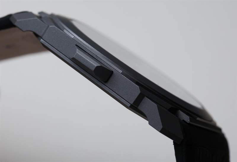 那么讓我們談談尺寸,因為這是一款破紀錄的手表。Bulgari Octo Finissimo 三問報時表殼厚 6.85 毫米,寬 40 毫米,采用涼爽的噴砂鈦材料制成。表冠也是鈦金屬,但經(jīng)過拋光處理并鑲嵌有黑色凸圓形陶瓷。這比之前創(chuàng)下“最薄三問報時表”記錄的Vacheron Constantin Patrimony Contemporaine Calibre 1731 Minute Repeater 薄了超過一毫米,后者于 2014 年記錄了大約8.09 毫米厚的表殼。廣告留言廣告信息結束