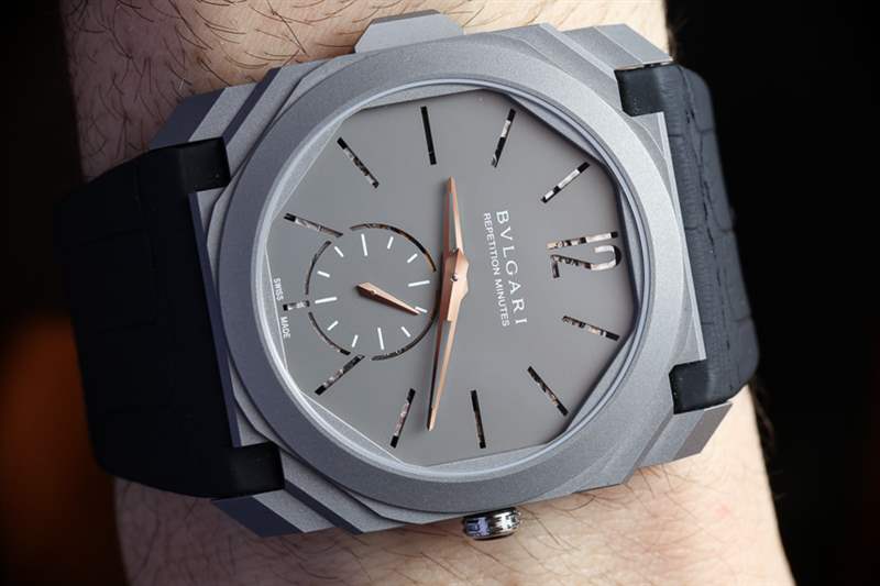 如果您還記得,Bulgari Octo Finissimo 系列還包含世界上最薄的陀飛輪手表,Bulgari Octo Finissimo Tourbillon于 2014 年與 Bulgari Octo Finissimo 系列一起首次亮相?,F(xiàn)在兩年后,Bulgari Octo Finissimo Minute Repeater 延續(xù)了這一傳統(tǒng).?Bulgari Octo Finissimo 既現(xiàn)代又時尚,又具有傳統(tǒng)吸引力,這對它很有幫助。廣告留言廣告信息結束