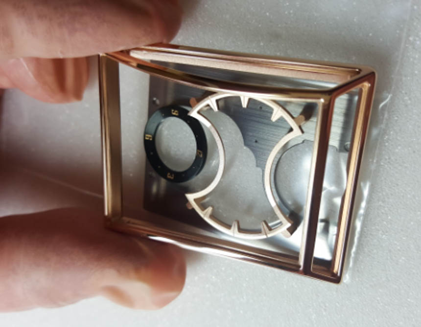 ArtyA 3 Gongs Minute Repeater, Regulator, & Double Axis Tourbillon 表殼的第二個靈感來自“水下房屋”。顯然,玻璃幕墻的結(jié)構(gòu)設(shè)計意味著存在于水下,有助于形成這種情況的想法。根據(jù) Artya 的說法,這種形狀的一部分是為了提供更大的表殼體積,以便以更好的音量聽到三問報時器的報時聲。
