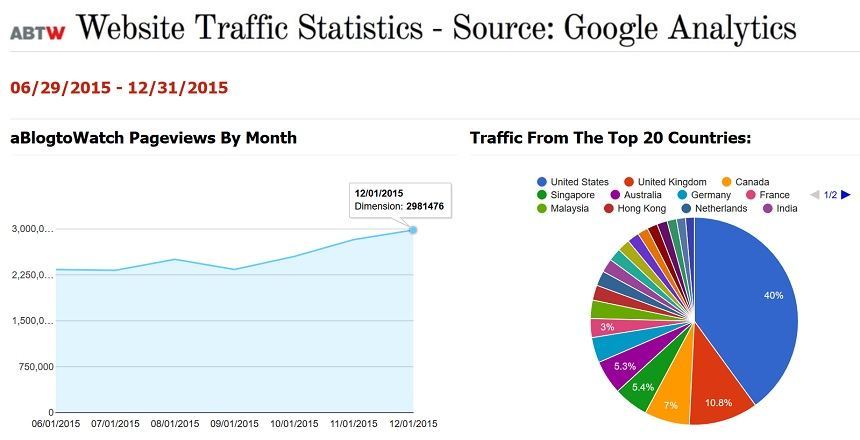 因此,總而言之,aBlogtoWatch 現(xiàn)在有一個(gè)小工具,可以讓任何人了解我們每月的基本流量以及大多數(shù)訪問該網(wǎng)站的人來自哪里。我們這樣做是為了幫助營銷公司,否則他們可能會(huì)掌握關(guān)于我們的完全錯(cuò)誤的數(shù)據(jù),從而誤導(dǎo)他們的客戶。我們也將此作為一種教育手段,用于那些自己認(rèn)為需要某種類型的驗(yàn)證來了解我們的流量的手表品牌。換句話說,這不是我們?cè)噲D隱藏的東西,我們會(huì)覺得它在那里更舒服,任何人都可以知道和驗(yàn)證。