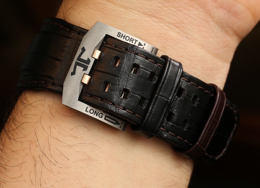 在所有的起點(diǎn)中,讓我們首先看看表帶扣。可以看出,即使在這里,積家也下了很大功夫。帶扣有一個(gè)特殊的小系統(tǒng),您可以在兩種尺寸之間進(jìn)行選擇,“短”或“長(zhǎng)”,這樣您就可以在手腕上留出一些額外的空間。向上移動(dòng)表帶,您會(huì)看到這也許是有史以來(lái)最令人印象深刻的皮革表帶之一。積家稱之為“雙鱷魚皮表帶”,因?yàn)樗鼘?shí)際上是兩種顏色,上面顏色較深,底部顏色較淺。后一條在紅金版上為棕色,在鈦版上為紅色。這款肩帶舒適且外觀精美,配有專有的末端鏈接,進(jìn)入專門設(shè)計(jì)的肩帶快速釋放系統(tǒng)。廣告留言廣告信息結(jié)束