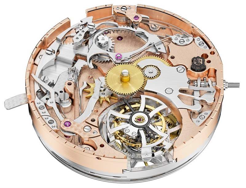 Roger Dubuis Hommage Minute Repeater Tourbillon Automatic 就是這樣一款生動(dòng)復(fù)雜的機(jī)械機(jī)芯,將陀飛輪與三問報(bào)時(shí)相結(jié)合,并提供自動(dòng)上弦功能。后一個(gè)元素非常有趣,因?yàn)檫@款手表具有“雙微型轉(zhuǎn)子”。世界衛(wèi)生大會(huì)…?沒錯(cuò),Roger Dubuis Hommage Minute Repeater Tourbillon Automatic 沒有一個(gè)完整的擺陀或一個(gè)較小的微型擺陀,而是有兩個(gè)微型擺陀。為什么?好吧,我不完全確定,Roger Dubuis 并未聲稱對(duì)此有任何特別的功利目的。我認(rèn)為他們之所以這樣設(shè)計(jì),是因?yàn)榱_杰杜彼有點(diǎn)前衛(wèi)。這么說吧,這不是我第一次看到雙微型擺陀了……在機(jī)芯背面有兩個(gè)較小的擺陀在旋轉(zhuǎn),這看起來確實(shí)很獨(dú)特。廣告留言廣告信息結(jié)束
