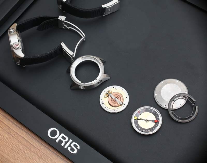 那么 Oris Big Crown ProPilot Altimeter 腕表是如何工作的呢?實際上,這非常簡單。手表的計時部分是 Oris 口徑 733,這是一個基本的瑞士 Sellita SW200 自動機芯,位于模塊頂部的表殼中間。機芯的柄軸延伸至 2 點鐘位置的表冠,可讓您上弦或調(diào)整 ProPilot 高度計的計時部分。