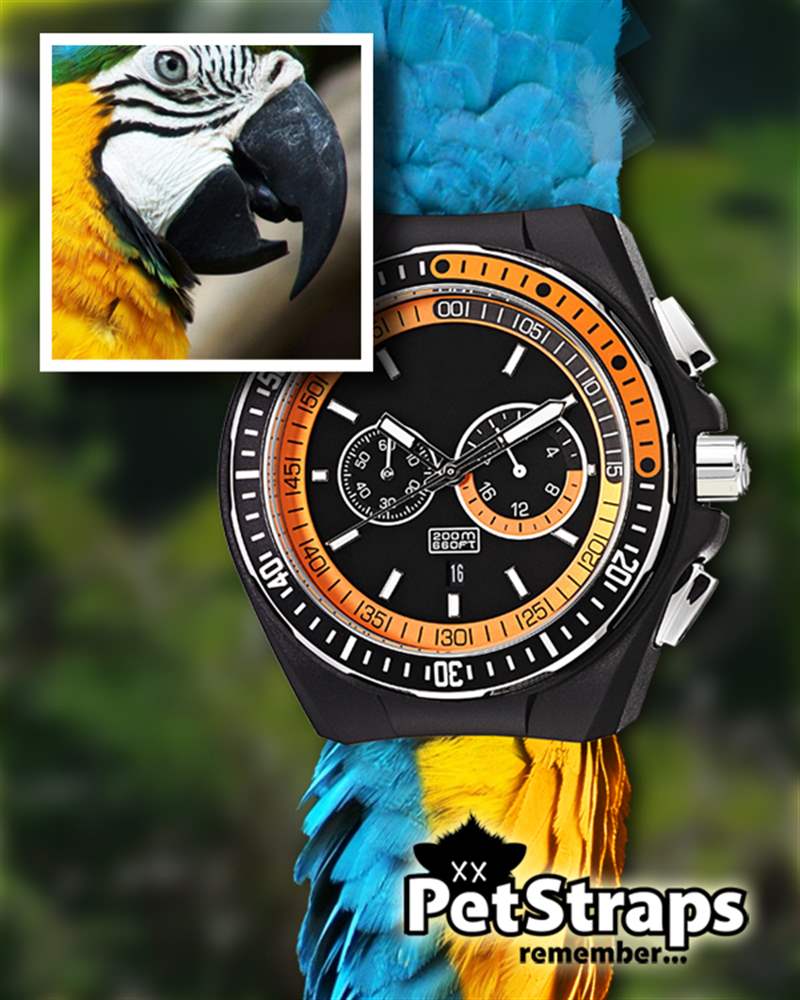 “黃肚皮是第一個(gè)項(xiàng)目,不久之后,又來了更多”。我需要宣傳 PetStraps 并推動(dòng)業(yè)務(wù)發(fā)展。為了促進(jìn)我的業(yè)務(wù),??我花了很多時(shí)間在當(dāng)?shù)氐墨F醫(yī)辦公室。“我會(huì)尋找那些哭泣的人,并假設(shè)他們剛剛失去了像 Yellow Belly 這樣的朋友?!?nbsp;有他在我的手腕上,我覺得我可以做任何事情。一個(gè)留著胡須的大塊頭男子出現(xiàn)時(shí),獸醫(yī)把他帶進(jìn)候診室,拍了拍他的后背,他哭著出現(xiàn)了,這就發(fā)生了具有挑戰(zhàn)性的情況。他只是坐了下來,好像他不知道要去哪里,所以我開始和他談?wù)撐业氖直怼_@個(gè)話題對(duì)這位最近失去寵物的紳士來說似乎很奇怪,但他可能很高興能從剛剛發(fā)生的事情中解脫出來。我得知他的室友 Yappers 在他們一起度過了三十多年后去世了。直到后來我才意識(shí)到,Yappers 是一只鸚鵡。這是一個(gè)挑戰(zhàn),因?yàn)槲覐膩頉]有想過 PetStraps 是由毛皮以外的任何東西制成的。Yappers 是第一款帶羽毛的表帶,從那時(shí)起,我們就用從海龜皮到魚鱗的各種材料制作了 PetStraps。”