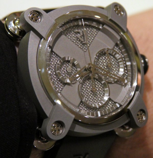 回到2010年巴塞爾國(guó)際鐘表珠寶展,我來到Romain Jerome的展位,看看“在烹飪什么”。原來是月塵。作為Moon Dust DNA系列手表的延伸,Romain Jerome(RJ)展示了“月球入侵者”。手表背面是一塊金屬板,看起來像月亮,里面實(shí)際上有來自月亮的灰塵。