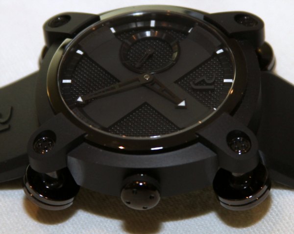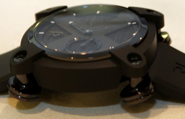 正如我所說,月球入侵者看起來像一個(gè)小型著陸器,腳很小。雖然最前衛(wèi),但表殼實(shí)際上看起來很整潔,細(xì)節(jié)令人印象深刻。表殼寬 46 毫米,但考慮到穿過中心和腳部的 RJ“X” 圖案的延伸,感覺更大。雖然很舒服。真的沒有其他手表看起來像這樣。表盤以網(wǎng)狀金屬開始。這應(yīng)該受到實(shí)際月球著陸器車輛的輪胎胎面的啟發(fā)。無論它的靈感來自什么,它看起來都很光滑,我認(rèn)識(shí)的其他人都沒有這樣做。
