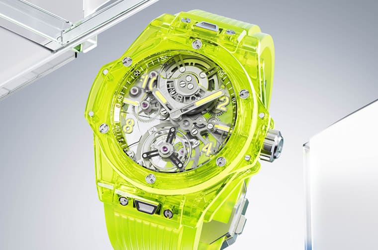 螢光黃透明表殼閃耀全場——Big Bang陀飛輪螢光黃SAXEM手表