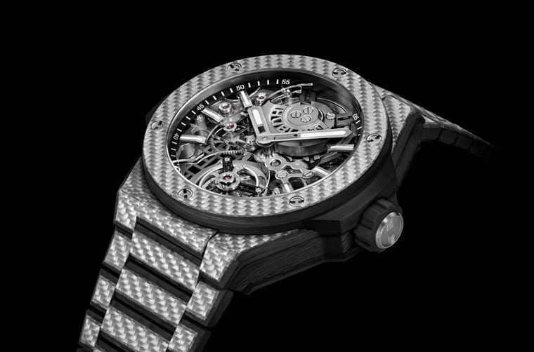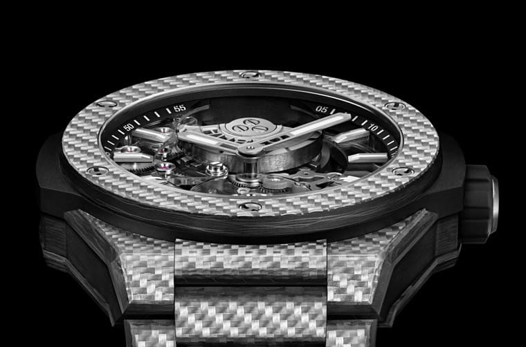 ▲擅長融入各種材質制表的宇舶,2023年首度應用鍍鋁碳纖維制成獨具品牌特色的Integrated一體式鏈帶。