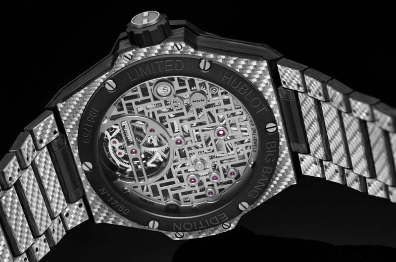 先前宇舶便曾運用過鍍鋁碳纖維制作像是Big Bang Unico計時碼表、Big Bang Unico高爾夫球手表、Big Bang Meca-10動力儲存手表,甚至也包含與這次新款同功能、同機芯的Big Bang Tourbillon Automatic等等,鍍鋁碳纖維不僅搭配各式功能都很合拍,且其外觀顏色也并非只有銀灰色,經過宇舶調整配方后,可以呈現(xiàn)藍色、綠色、黃色等等,顛覆我們對碳纖維材質的既定印象。