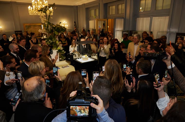 ▲Billionaire Timeless Treasure的日內(nèi)瓦發(fā)表會現(xiàn)場,聚集了大批媒體爭相目睹它的珠寶表王者風(fēng)采。
