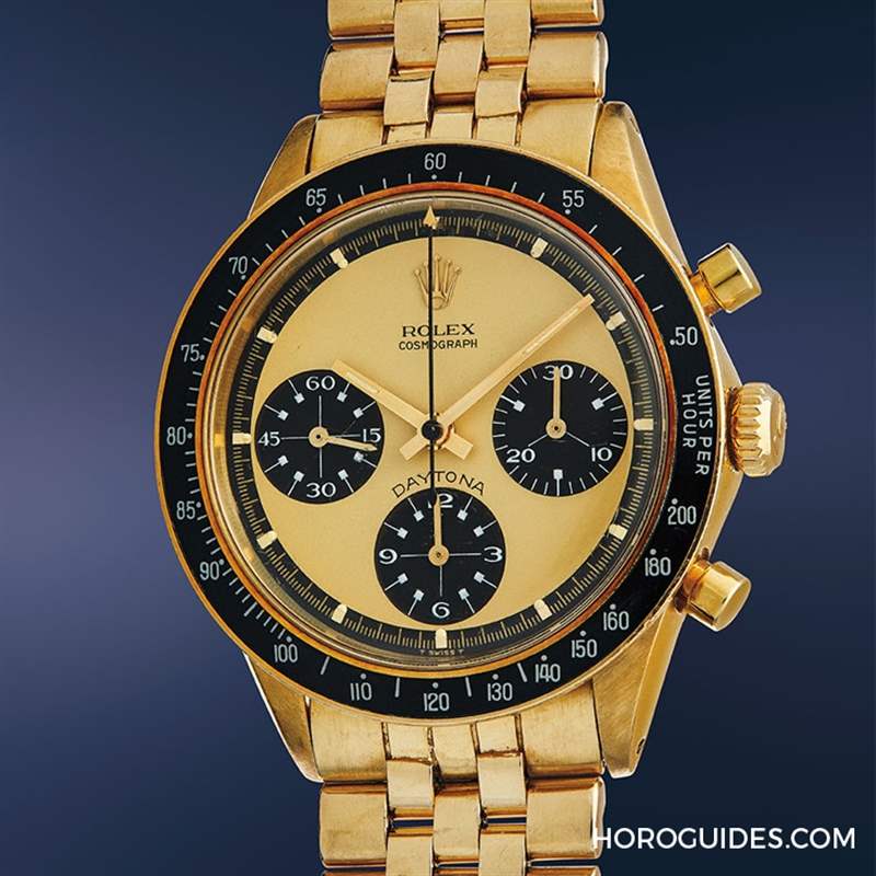 首次出現(xiàn)在拍場的Rolex Paul Newman Daytona Lemon型號6264 于此場拍賣以逾200萬美元成交,遠超拍前估價,是此場拍賣的第二高成交價拍品。這只表在1969年生產(chǎn)以來就被墨西哥家族El Limoncito納入收藏,也因此得名「El Limoncito」。表鏈印有「Hecho in Mexico」字樣。被稱為「Lemon」的綠黃色表盤、黑色副表盤加上白色時標的配置,是Cosmograph Daytona Paul Newman罕有的設(shè)計。