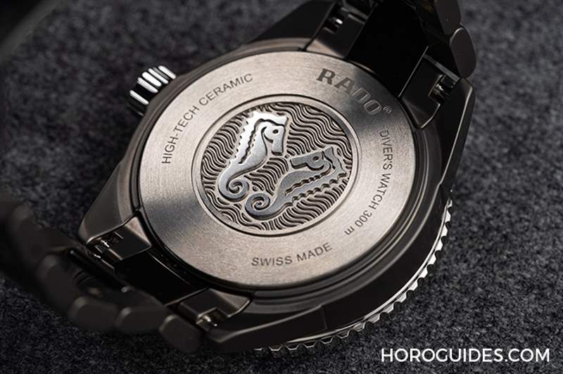 新表還有一個(gè)重點(diǎn),就是表款通過(guò)了ISO 6425國(guó)際認(rèn)證,也就是專門為潛水表制定的檢測(cè)標(biāo)準(zhǔn),所以表款不單是具備防水300米的性能,而且是真正可以在潛水的高水壓環(huán)境里佩戴,夜光的亮度也足夠在水底辨識(shí),符合潛水運(yùn)動(dòng)的需求。所以我們可以看到鈦金屬材質(zhì)的后底蓋除了立體的雙海馬圖騰之外,邊緣并刻著必須通過(guò)認(rèn)證、才能特別標(biāo)記的「DIVER’S WATCH」的字樣?,F(xiàn)今市場(chǎng)上有不少中低價(jià)位表款具備潛水表風(fēng)格外型,而雷達(dá)表此次升級(jí)進(jìn)化的Captain Cook全陶瓷表,就是告訴表迷們除了外觀有型之外,品牌同樣重視表款的功能性。