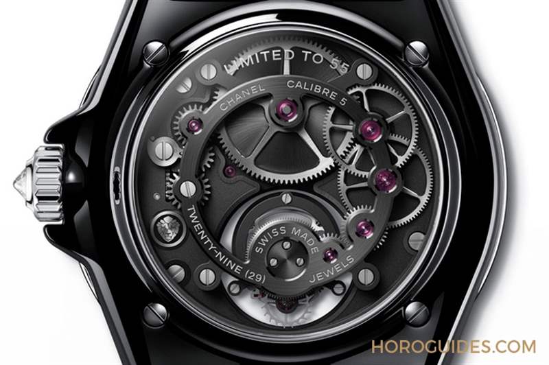 因?yàn)橄隳蝺篊HANEL第五枚自制機(jī)芯Caliber 5,陀飛輪的運(yùn)行開始發(fā)光|J12鉆石陀飛輪腕表-復(fù)刻表