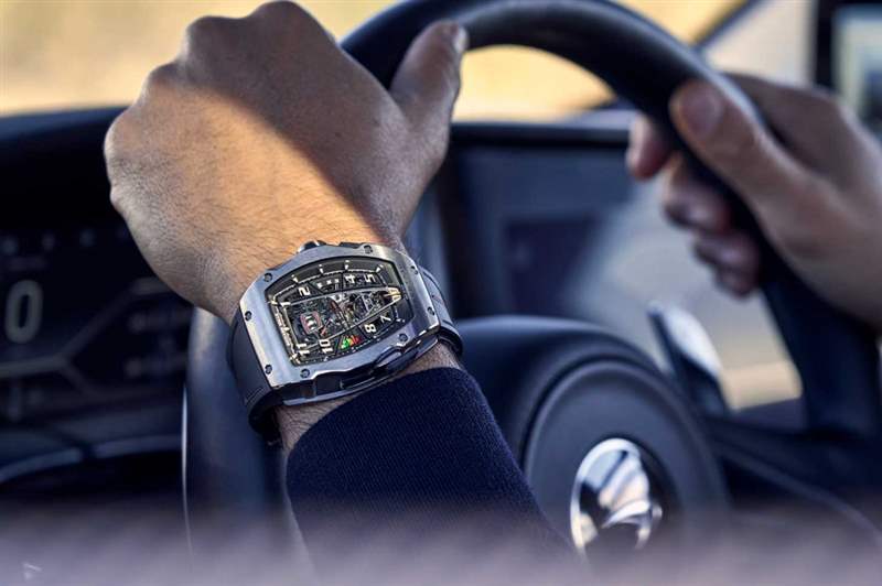 腕表的表圈及表蓋采用五級鈦金屬,中層表殼則是TPT碳纖維,表圈上的凹槽借鏡超跑引擎蓋的開孔,而按鈕設(shè)計也參照了超跑前輪后方的出風(fēng)口。Richard Mille亦特別加入獨(dú)特的細(xì)節(jié)設(shè)計,6時位置可見McLaren標(biāo)志性的橙色條紋,更一直延伸至橡膠表帶,模仿Speedtail后擋風(fēng)玻璃的垂直煞車燈。