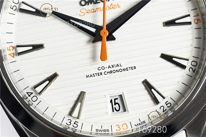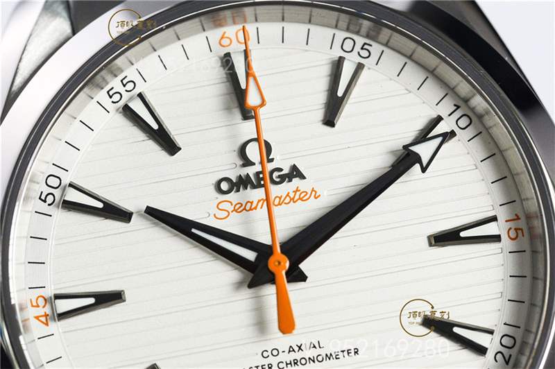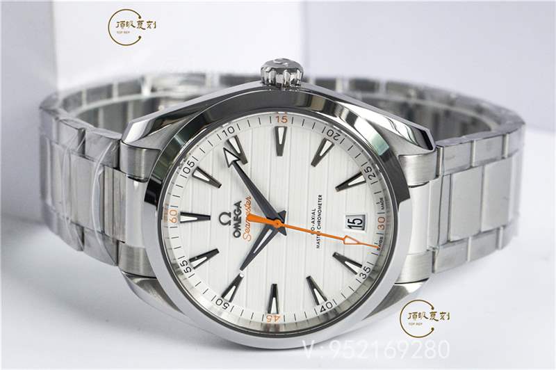 VS廠歐米茄海馬Aqua150復(fù)刻版白面橙色秒針,相比金針隊(duì)長(zhǎng)沒(méi)有那么豐富的色彩元素,屬于“悶騷”類(lèi)型的。腕表采用的簡(jiǎn)約柚木表盤(pán),柚木的設(shè)計(jì)理念是歐米茄在2008年引入于Aqua Terra腕表中,這也成為Aqua Terra腕表的標(biāo)志性特征之一,最直接體現(xiàn)在盤(pán)面水平的紋理,人們第一眼看到它,很容易聯(lián)想到游艇木質(zhì)甲板的奢華質(zhì)感。簡(jiǎn)單的大三針與三角形小時(shí)刻度的設(shè)計(jì),也是為了致敬早期歐米茄腕表的設(shè)計(jì)風(fēng)格。