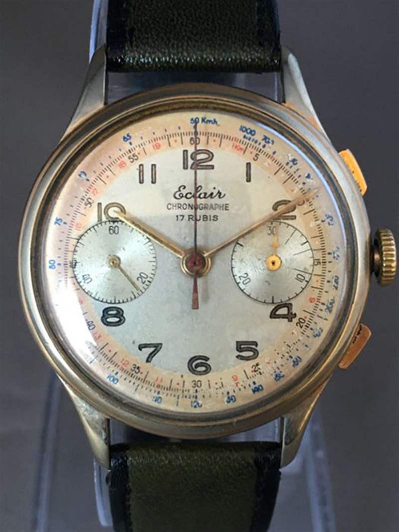 這是一款金色的 Eclair Chronograph Landeron 51,而且相當(dāng)破舊。計時碼表是自行車記者的理想選擇,因?yàn)樗鼏酒鹆俗孕熊嚭推嚨乃俣炔町?。此外,它也符合電影的風(fēng)格,因?yàn)榈谝粋€場景顯示小鎮(zhèn)從空蕩蕩的街道迅速醒來,進(jìn)入喧囂的生活,仿佛它們被計時了。手表是黃金,但損壞和骯臟的事實(shí)顯示了時間的影響,就像小鎮(zhèn)本身已經(jīng)從其復(fù)古的輝煌變成了現(xiàn)代的骯臟。