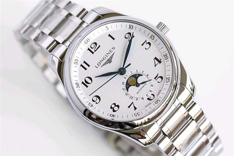 GF廠浪琴月相款白盤復(fù)刻腕表尺寸為表徑40毫米;厚度為12毫米十分適合正裝休閑的佩帶氣質(zhì)。在原料方面選用了316精鋼,全體腕表打磨的也是十分亮色,全體腕表的拋光也是十分具有顏值感,一起旁邊面的菱角處也是十分光滑,手感十分舒適!